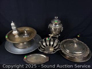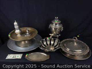 Lot #0170: Assorted Silverplate, Brass, Aluminum Table & Serviceware