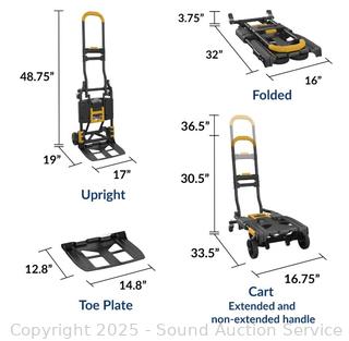 - Multi-Position - Use as a Two Wheel Upright Hand Truck, a 4 wheel Cart, and Folds Flat for