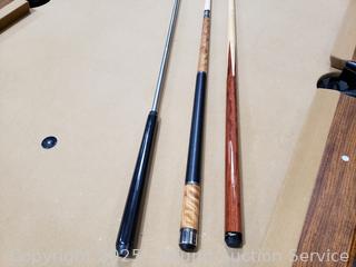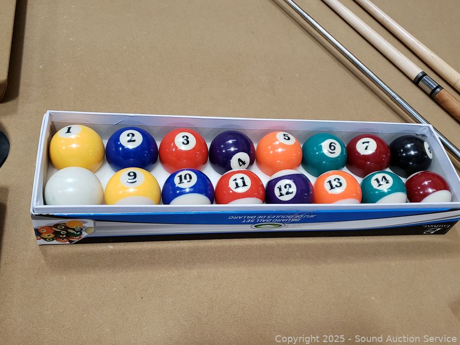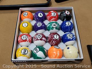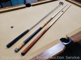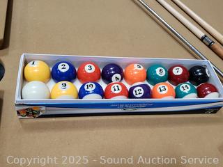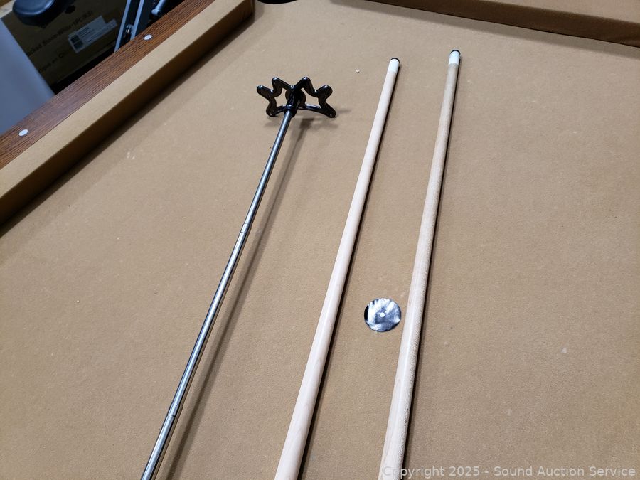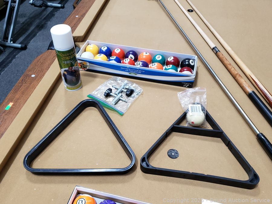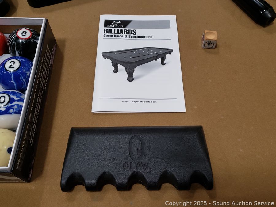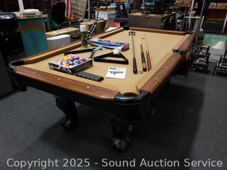 Lot #0020: East Point Pool Table w/2 Cue Sticks, Bridge, Racks, Balls & More