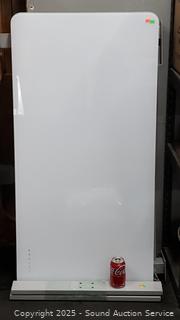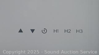 Appears to be in functioning condition. No hardware to attach legs. Approx. 27" to 47" H x x 47-5/16" W x 23-5/8" D. Touch controls, USB ports.