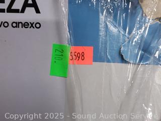 2 of the shelves are damaged. Appears complete. 72" H x 48" x 24".