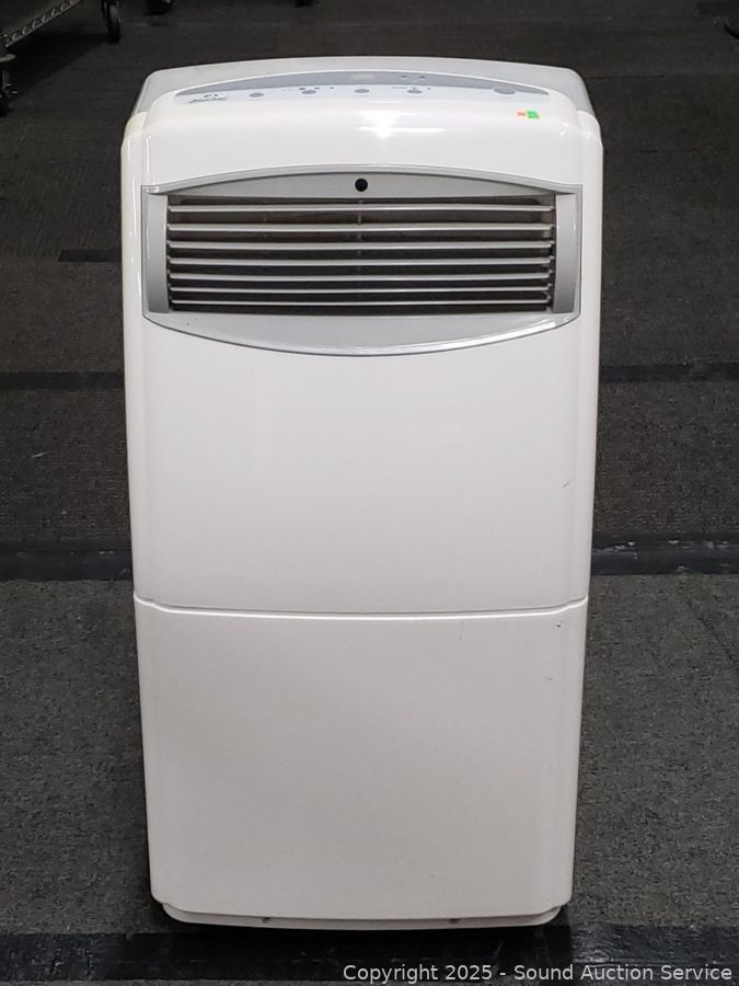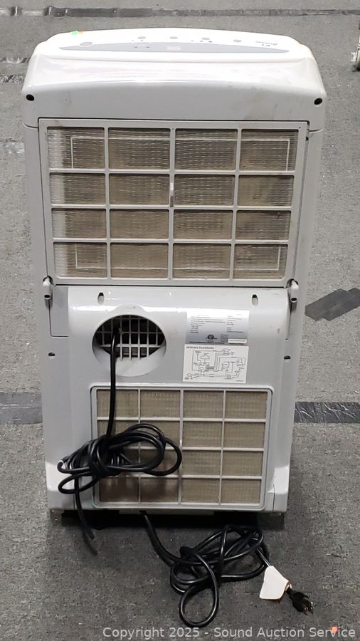 Appears to be blowing cold air, hard to tell, cold in here. Model PACR12. 34.5" H x 18" W x 15.5" D.