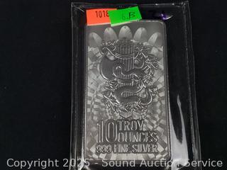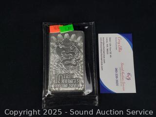 Lot #0006B: 10 Troy Ounce .999 Fine Silver Bar #21