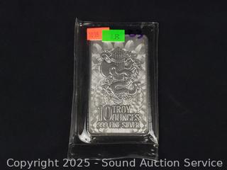 Lot #0008B: 10 Troy Ounce .999 Fine Silver Bar #23