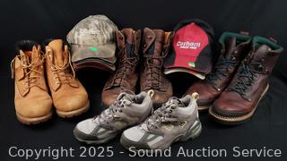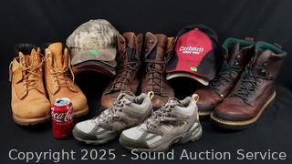 Lot #0019: 4 Pairs Men's Boots, Sneakers & 15 Caps