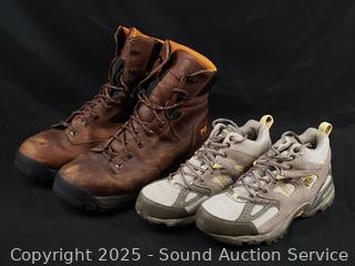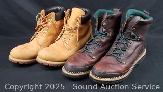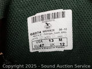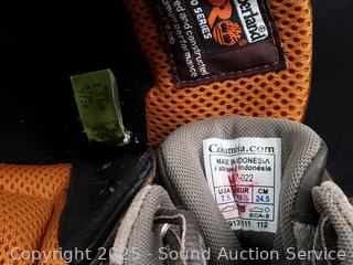 Georgia Giant Leather Boots S:12, Timberland Leather Boots S:13, Timberland Pro Boots S:13M, Columbia Sneakers S:7.5. 15 caps. All with signs of wear from use.