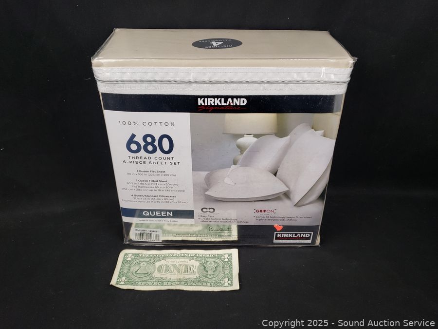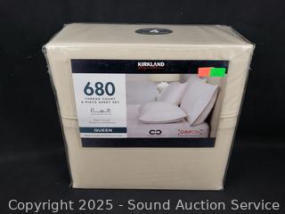 Lot #0267: 6pc Kirkland 680TC Pima Cotton Queen Beige Sheet Set
