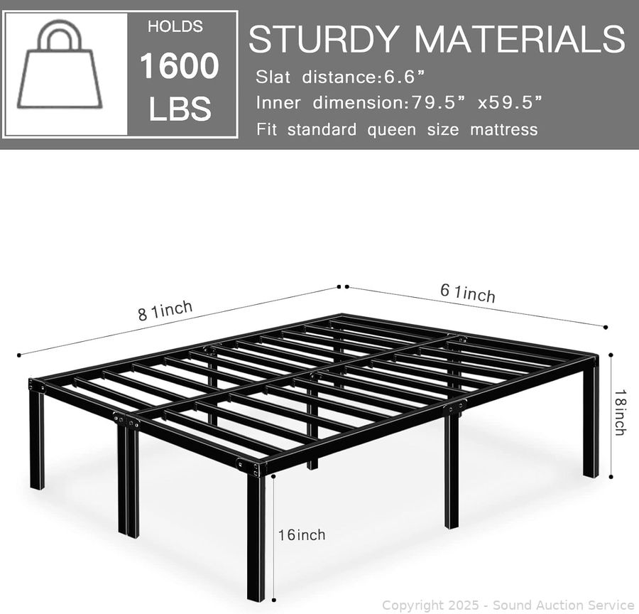 - Bed Frame Size: Queen, 81 x 61 x 18 inches