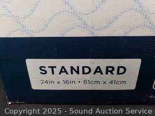 16" x 24". Removable cover. Don't see any issues.