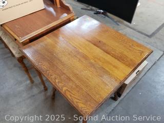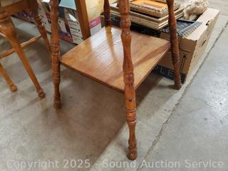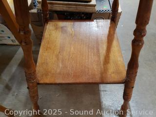 Lot #0015: Vintage Oak 2-Tier Accent Table