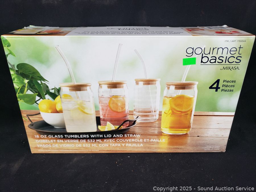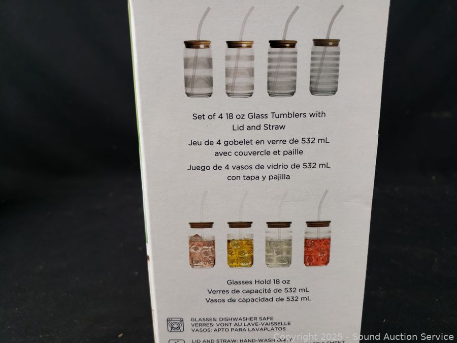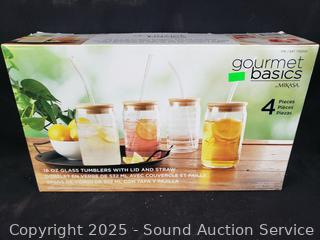 Lot #0239: 18oz Glass Tumblers w/Lid & Straws