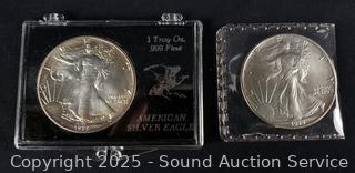 Lot #0124: 1989 & 1990 1 Troy Ounce .999 Fine Silver Eagle US Dollars
