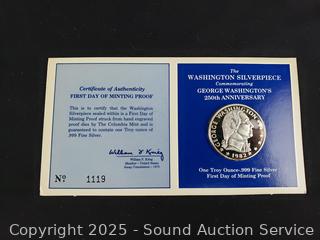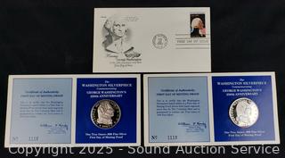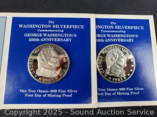 Lot #0133: (2) 1 Troy Ounce .999 Fine Silver Washington Silverpiece Medals