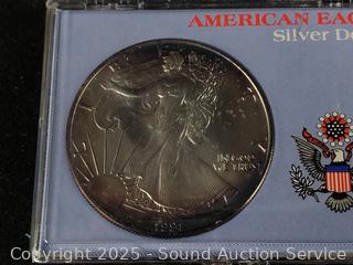 Lot #0114: (2) 1991 American Eagle 1oz Fine Silver Dollars