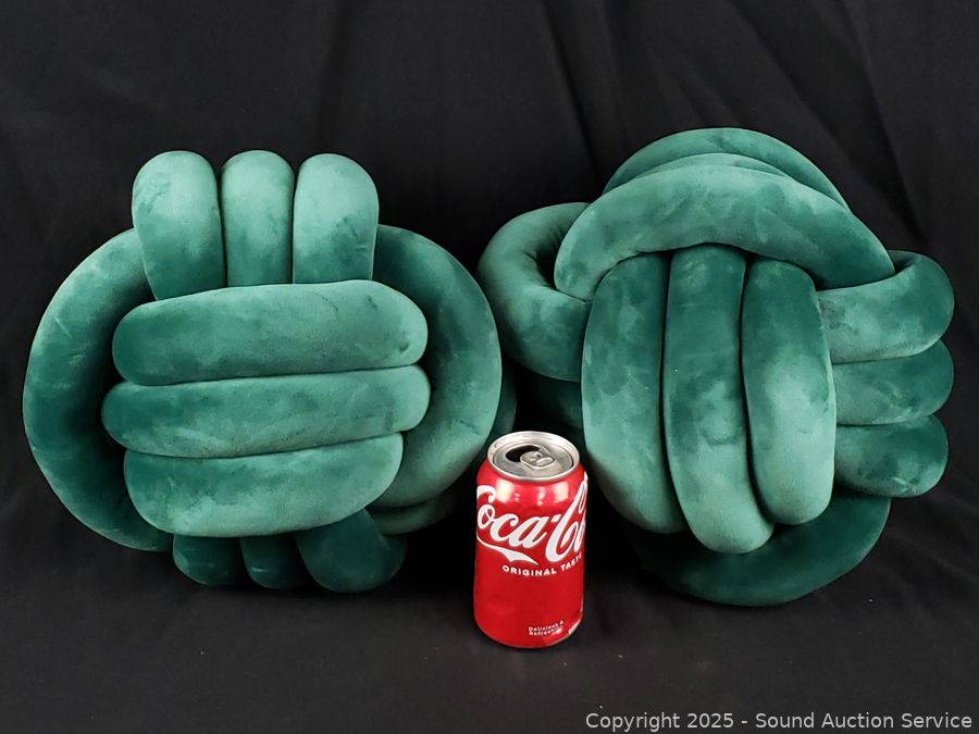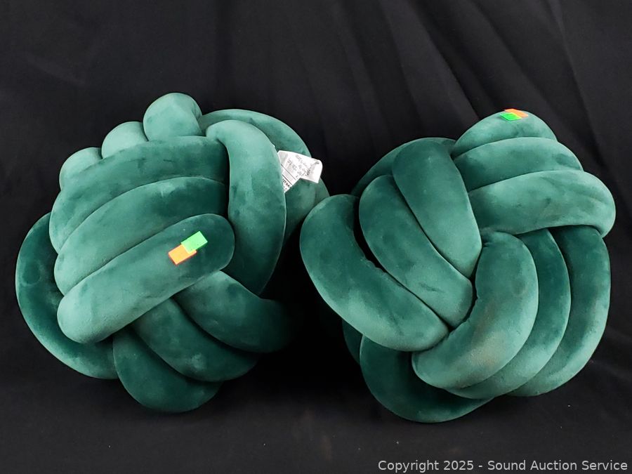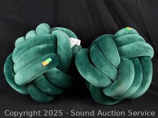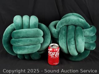 Lot #0229: 2 Green Plush 11" Knot Pillows