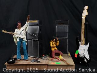 Lot #0156: 2 Jimi Hendrix Figures, Model Guitar & Guitar Light