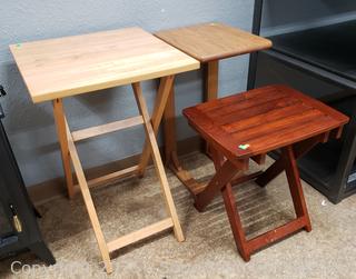 Lot #0088: 2 Wood Folding & 1 "C" Accent Tables