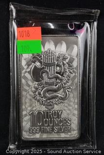 Lot #0109: 10 Troy Ounce .999 Fine Silver Bar #26
