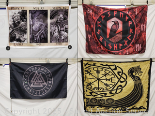 Lot #0159: 3 Celtic/Viking Flags/Tapestries & Giclee Canvas Print
