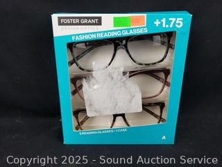 Lot #0290: 3 Foster Grant Fashion +1.75 Reading Glasses w/1 Case