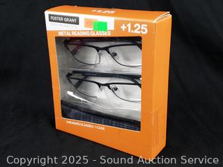 Lot #0095: 3 Foster Grant Metal +1.25 Reading Glasses w/1 Case