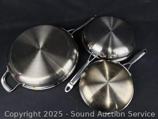 Lot #0312: 3pc Cuisinart Stainless 8|10|12" Skillets w/2 Lids