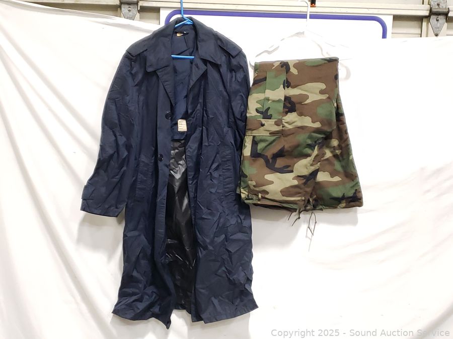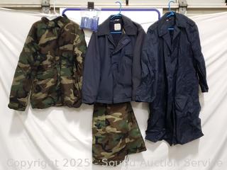 Lot #0197: 5 Military Medals, 2pc Chemical Protection Suit, Rain Jacket & Navy Jacket