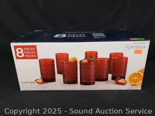 Lot #0262: 8pc Fortessa Jupiter Red Glass 13oz Tumbler Set