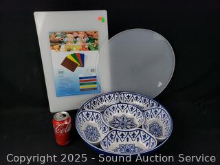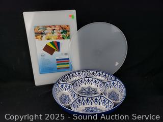 Lot #0238: Appetizer Server w/Lid & Cutting Board