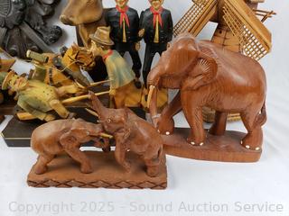 Elephants, wagon cart with barrels, deer mount, smoking station, windmill, etc. Most appear to be Germn. Refer to photos for lot contents, more details.