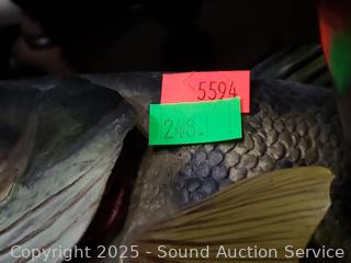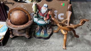 Globe, Santa fishing figure, cast iron dog figure, fish figure, etc. Refer to photos for lot contents, more details.