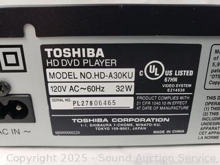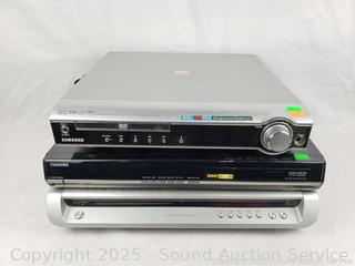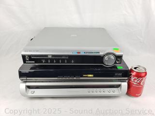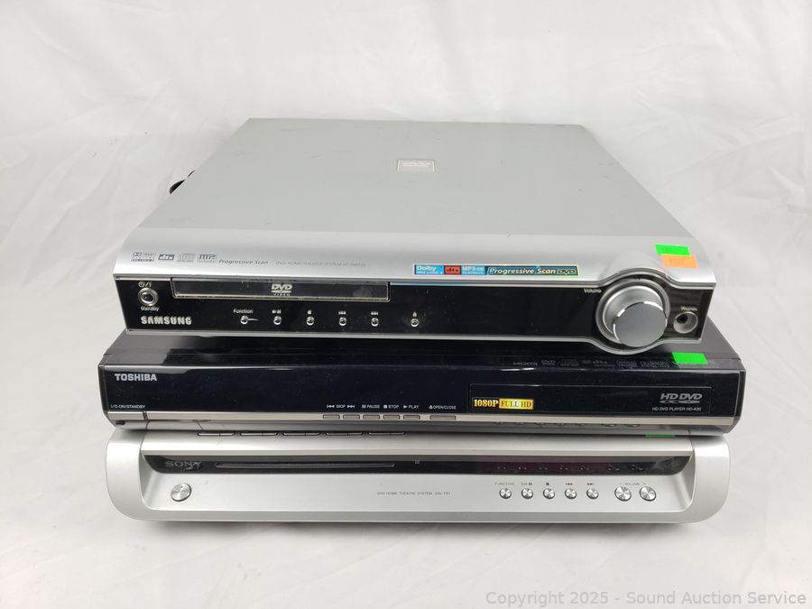 3 DVD Home Theater Systems - Parts/Repair - Sony DAV-FR1 DVD Home Theater System, has power, no sound using audio out receiver, otherwise unknown condition. Toshiba HD-A30 HD DVD player, unknown condition. Samsung HT-DM150 DVD Home Theater System, no sound output, otherwise unknown condition.