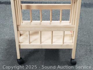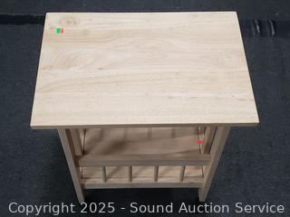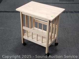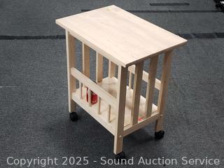 Lot #0025: Natural Wood Finish Rolling 2-Tier Side Table