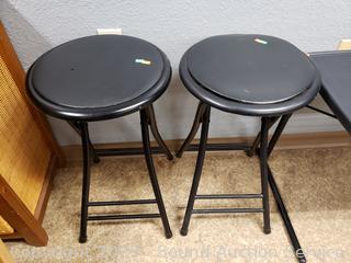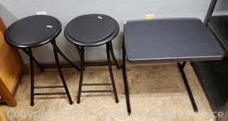 Lot #0089: Pair of Black Folding Metal Stools & Folding Task Table