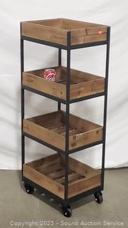 Lot #0034: Rolling 4-Tier Steel/Wood Utility Rack