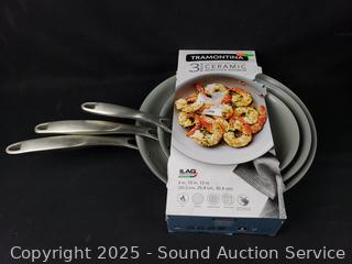 Lot #0255: Tramontina 8|10|12" Ceramic Hard-Anodized Non-Stick Skillets