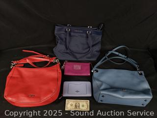 Lot #0124: 2 Coach Handbags, 2 Wallets, 1 Michael Kors Purse