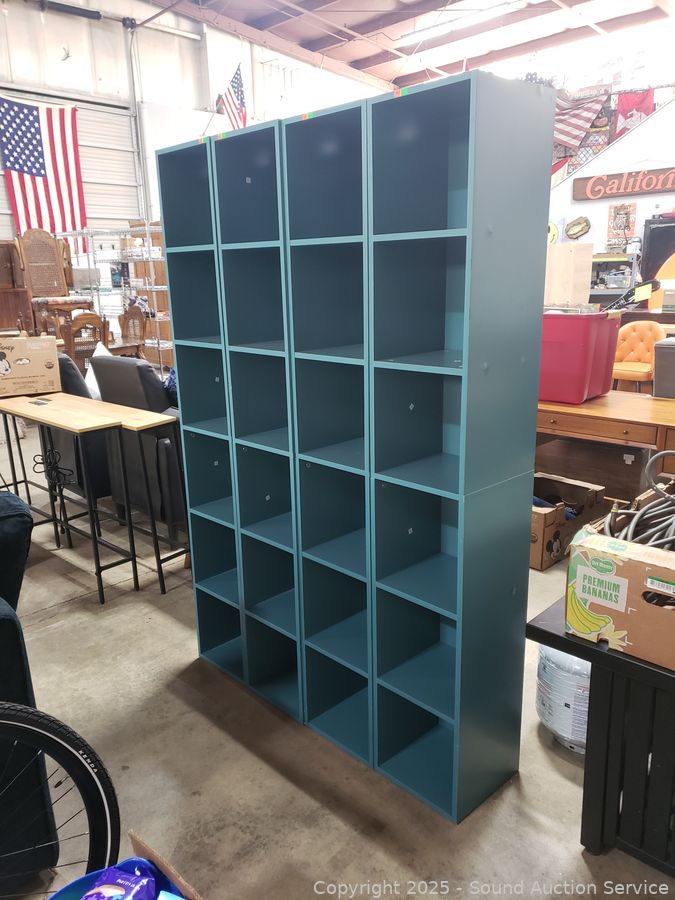 Lot #0075: 4pc Teal Cubby Shelving Units