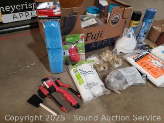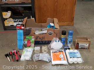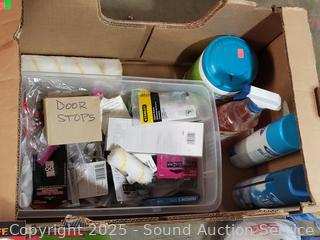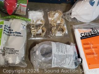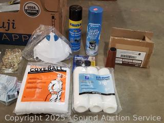 Cone filters, shower curtain hooks, pour & store paint can lids, drop cloths, glass cleaner, etc.