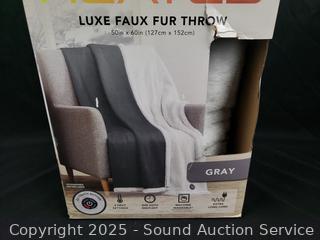 Lot #0219: Berkshire Heated 50" x 60" Gray Luxe Faux Fur Throw