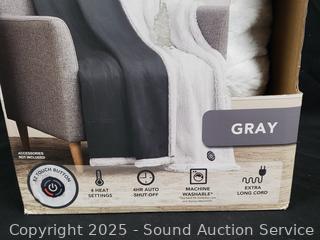 Lot #0166: Berkshire Heated Gray Luxe Faux Fur 50" x 60" Throw