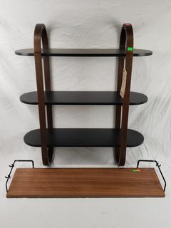 Lot #0081: Umbra Bellwood 3-Tier Wall Shelf & Teak Wall Shelf