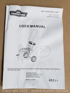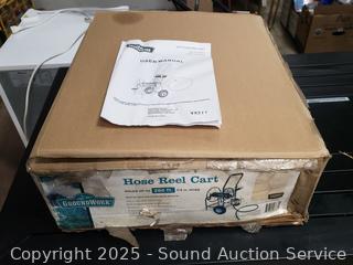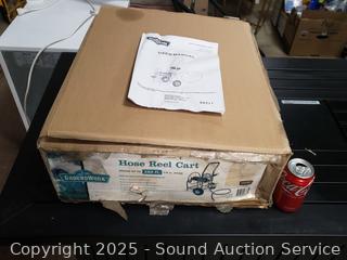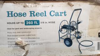 Holds up to 260ft 5/8" garden hose. Unassembled in original packaging.