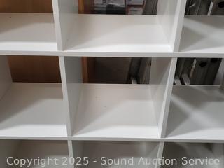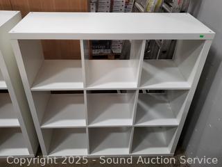Lot #0008: White Laminate 9-Cubby Shelving Unit