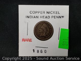 Lot #0311: 1860 Rare US Copper Nickel Indian Head Cent
