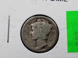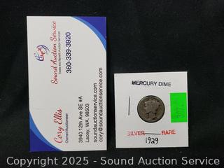 Lot #0307: 1929 US 90% Silver Mercury Dime