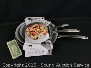 Lot #0295: 3 Tramontina 8|10|12" Ceramic Hard-Anodized Non-Stick Skillets