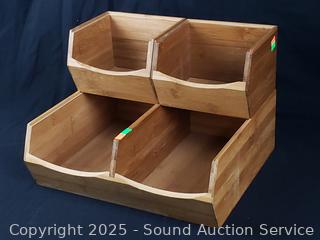 Lot #0286: 4pc Stackable Bamboo Organizer Set