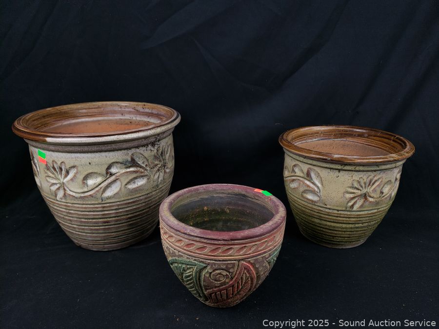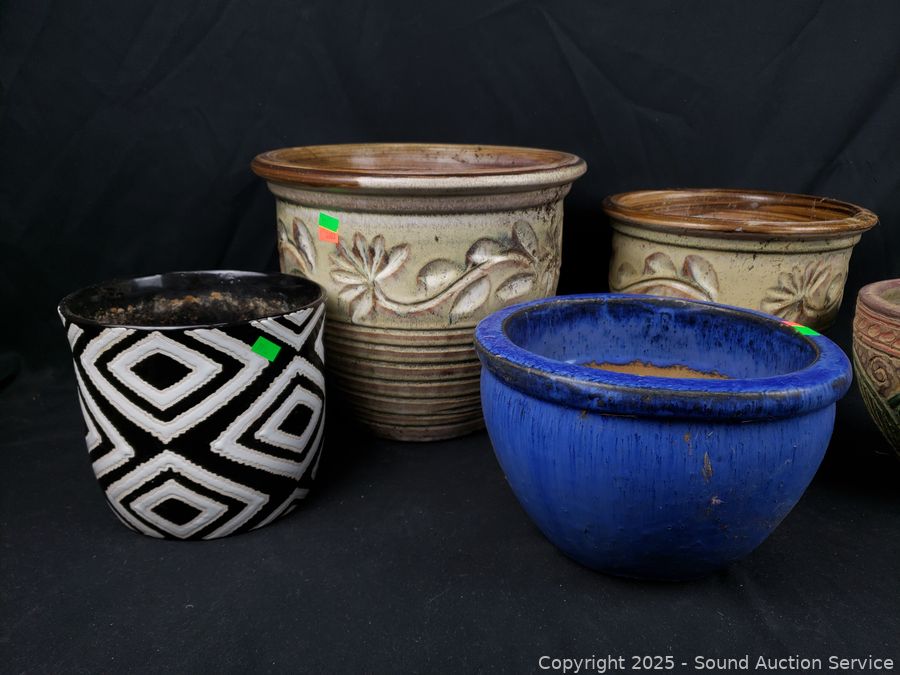 6.5" H x 7.25" Dia to 10" H x 12" Dia. Signs of wear from use, don't see any major issues.