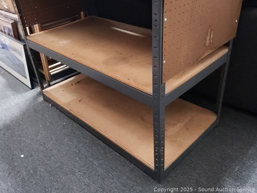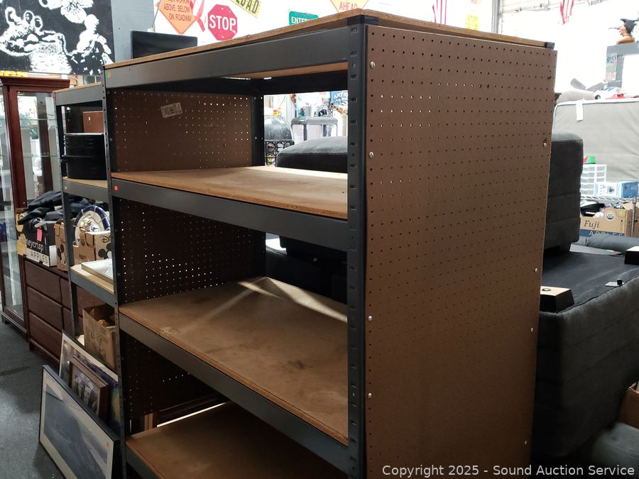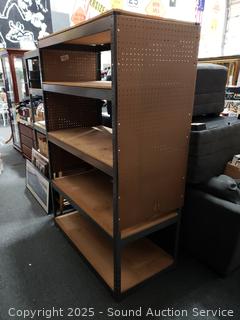 Lot #0035: 5-Tier Steel Shelf Utility Rack w/Peg Board Mounted To Sides